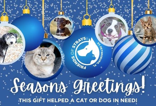 Not sure what to get someone, or maybe they don't want "stuff"? Make a donation to Friends of Strays to help cats and dogs in need this season! Simply make a donation on our website and select "Dedicate this Donation" and type in your friend's name. Follow the donation process and you'll be able to select an e-card to be delivered to your loved one informing them of your donation. Click here to donate today!